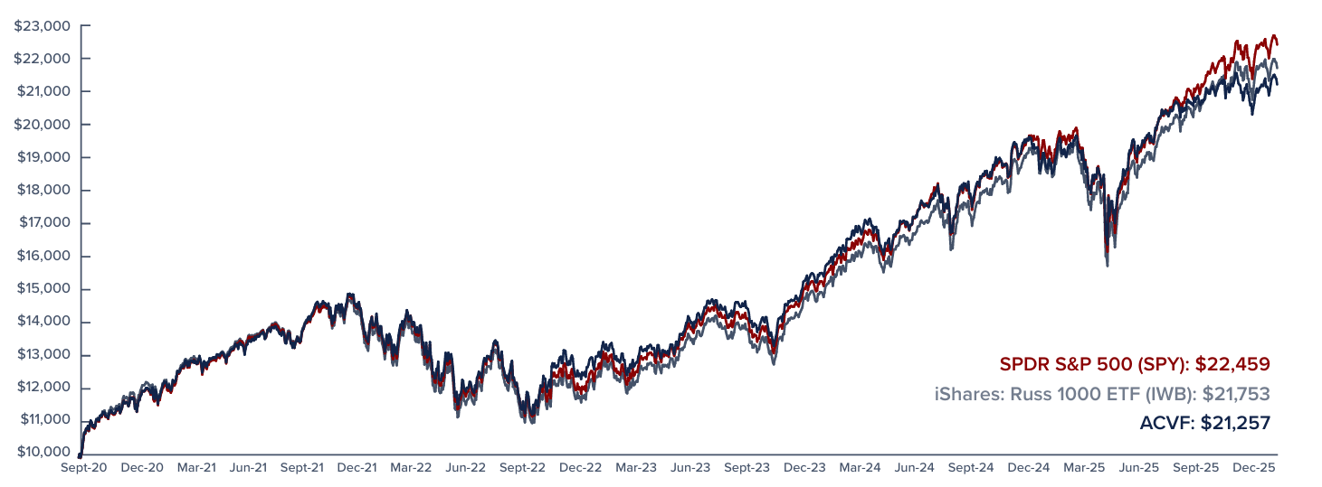 | ACVF (Market) | 0.30% | 5.03% | 13.67% | 13.67% | 17.07% | 19.27% | 12.99% | 15.69% |